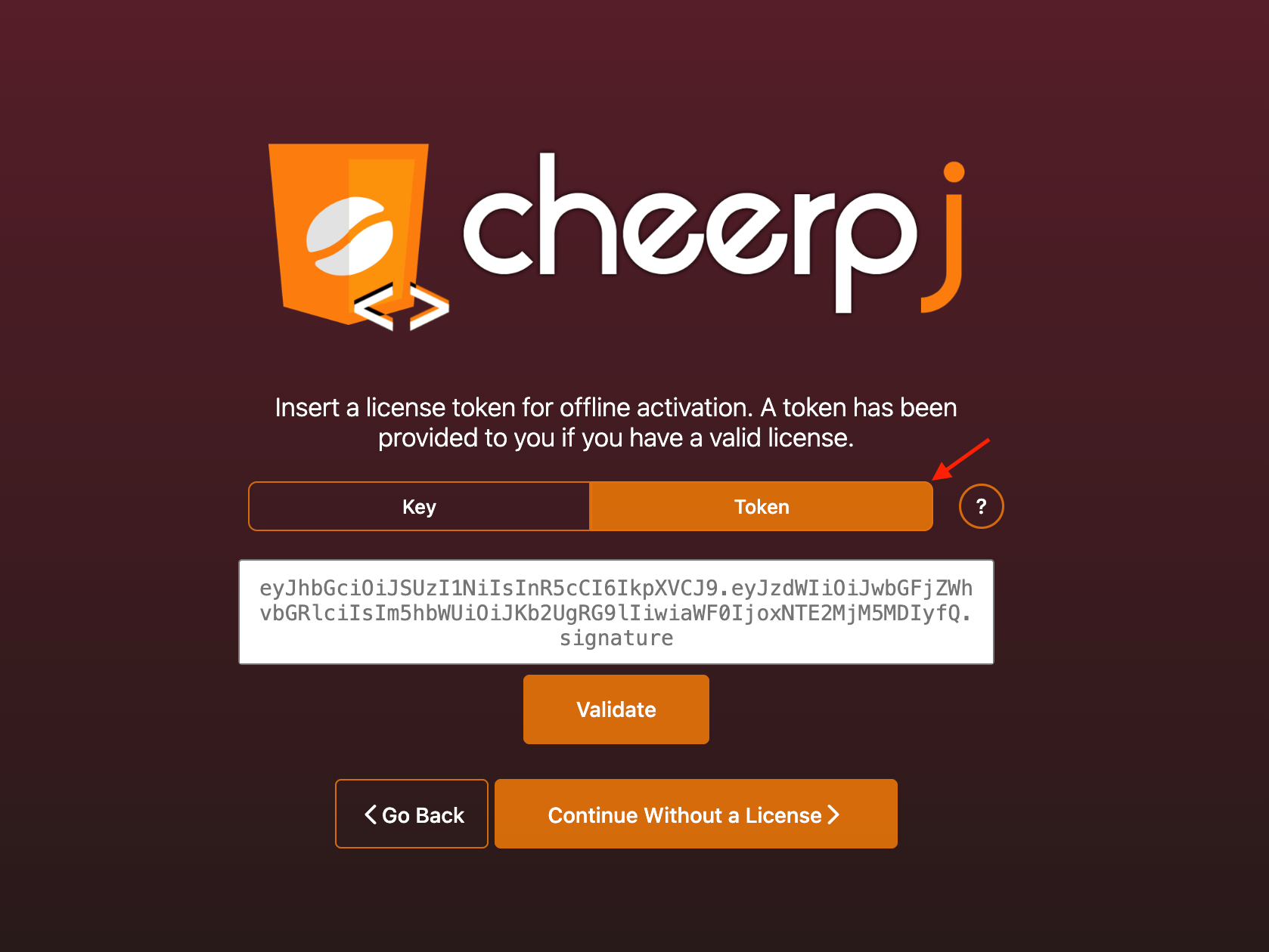 - License Token: If you received a license token, typically for technical evaluations or organizational licenses โ see the Offline activation via License Token section.